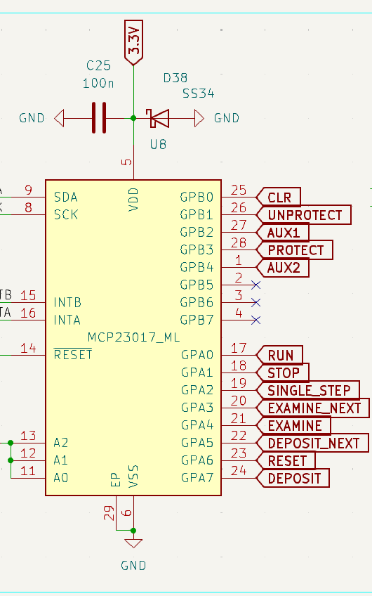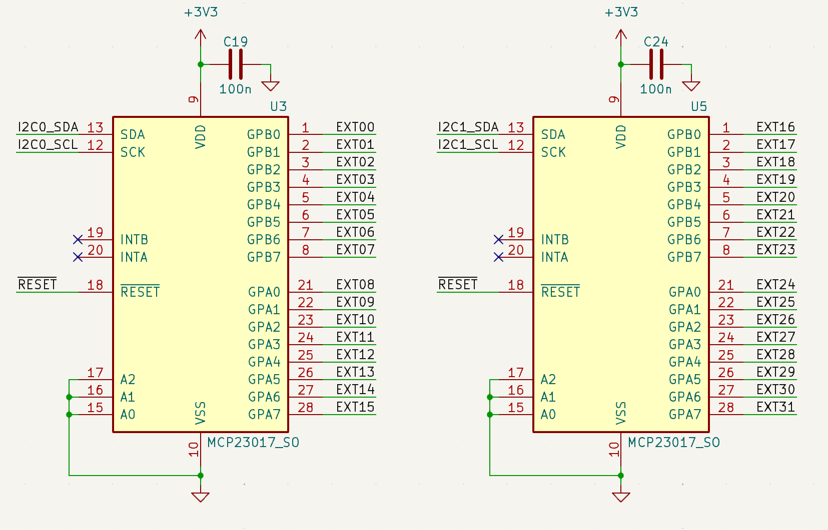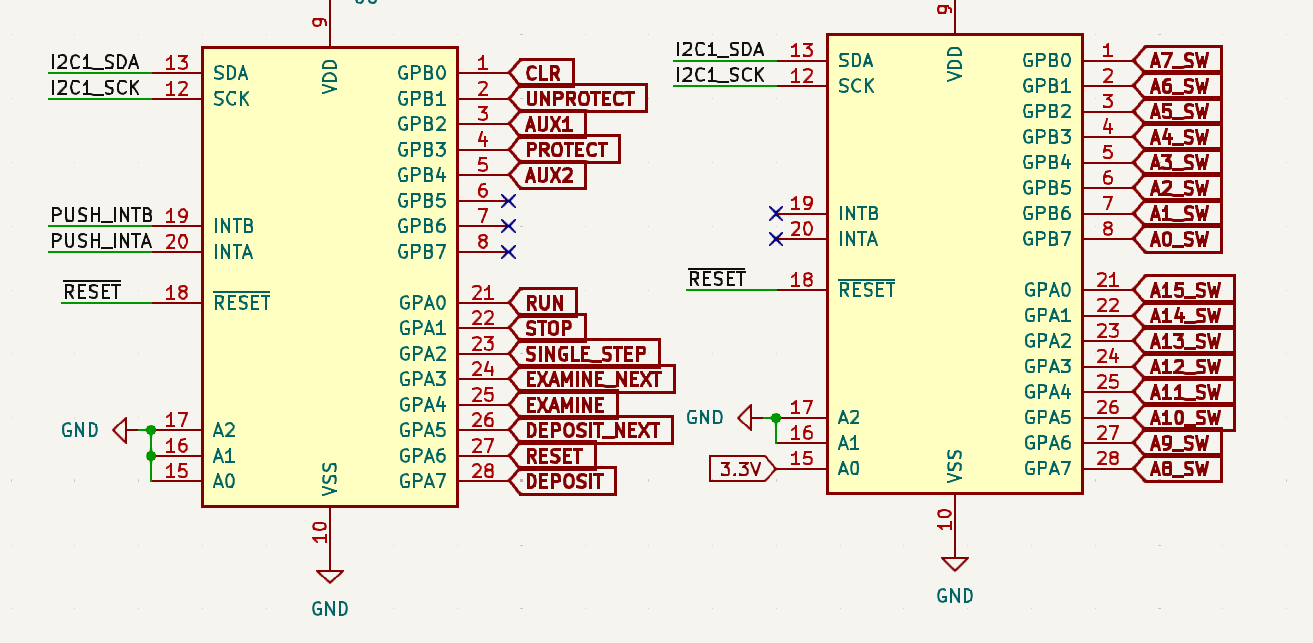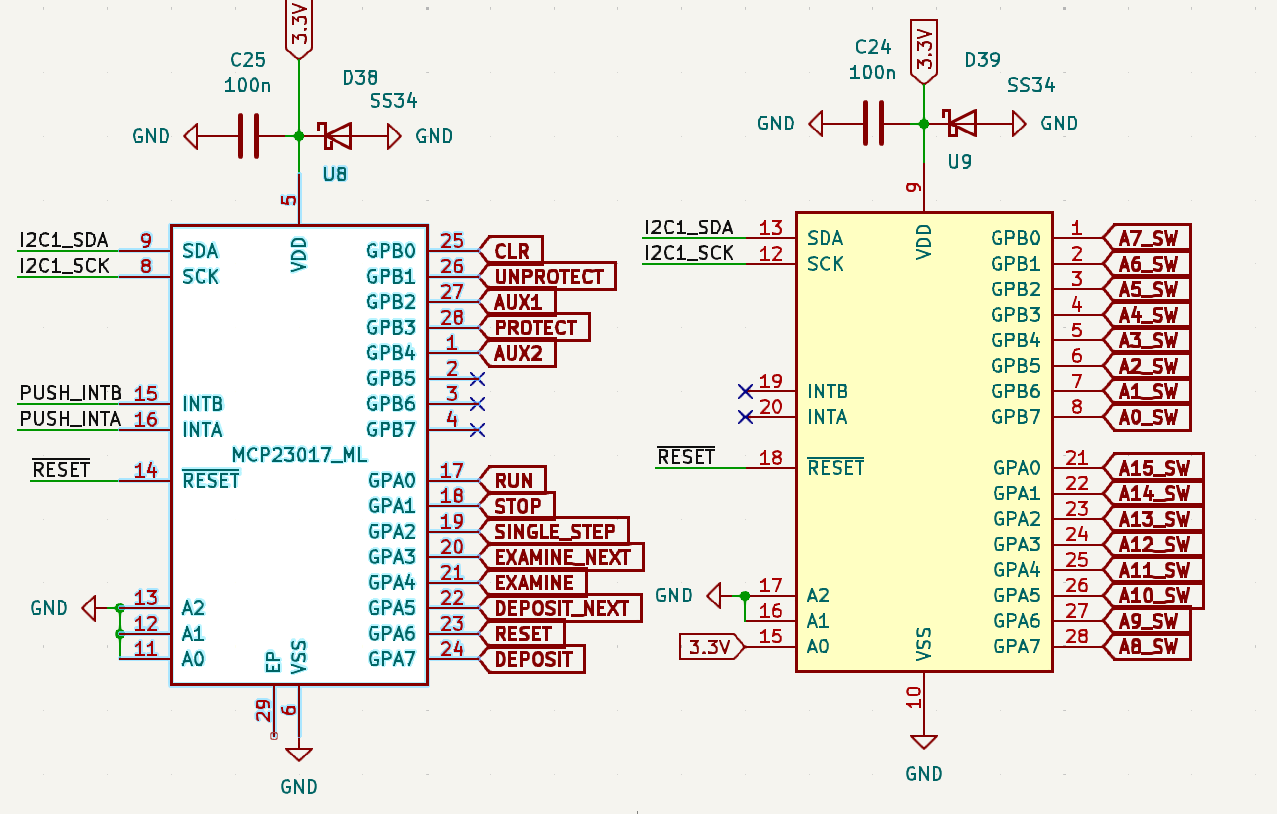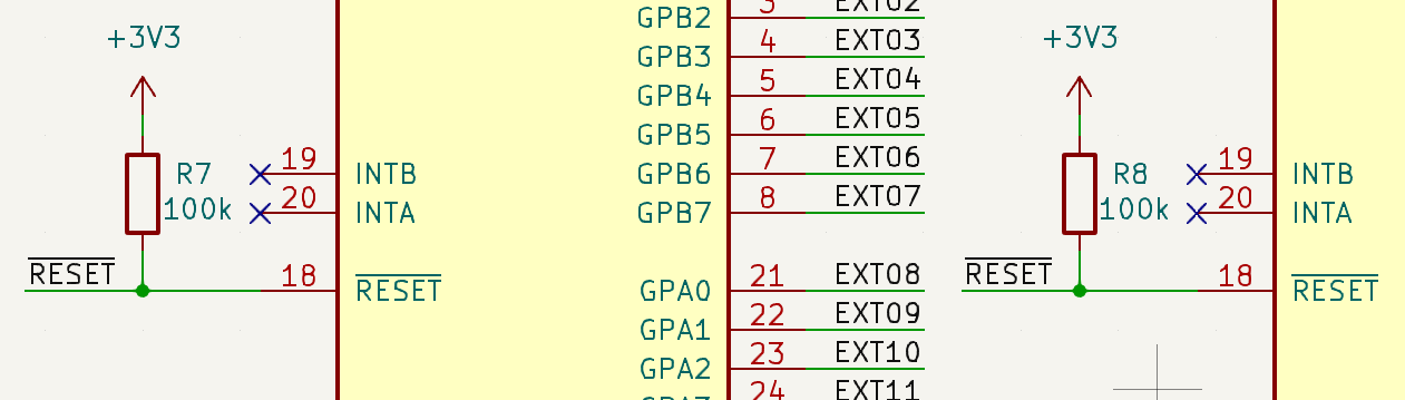 remark: ugh the pullup resistors for the two different MCP23017's nReset are duped
