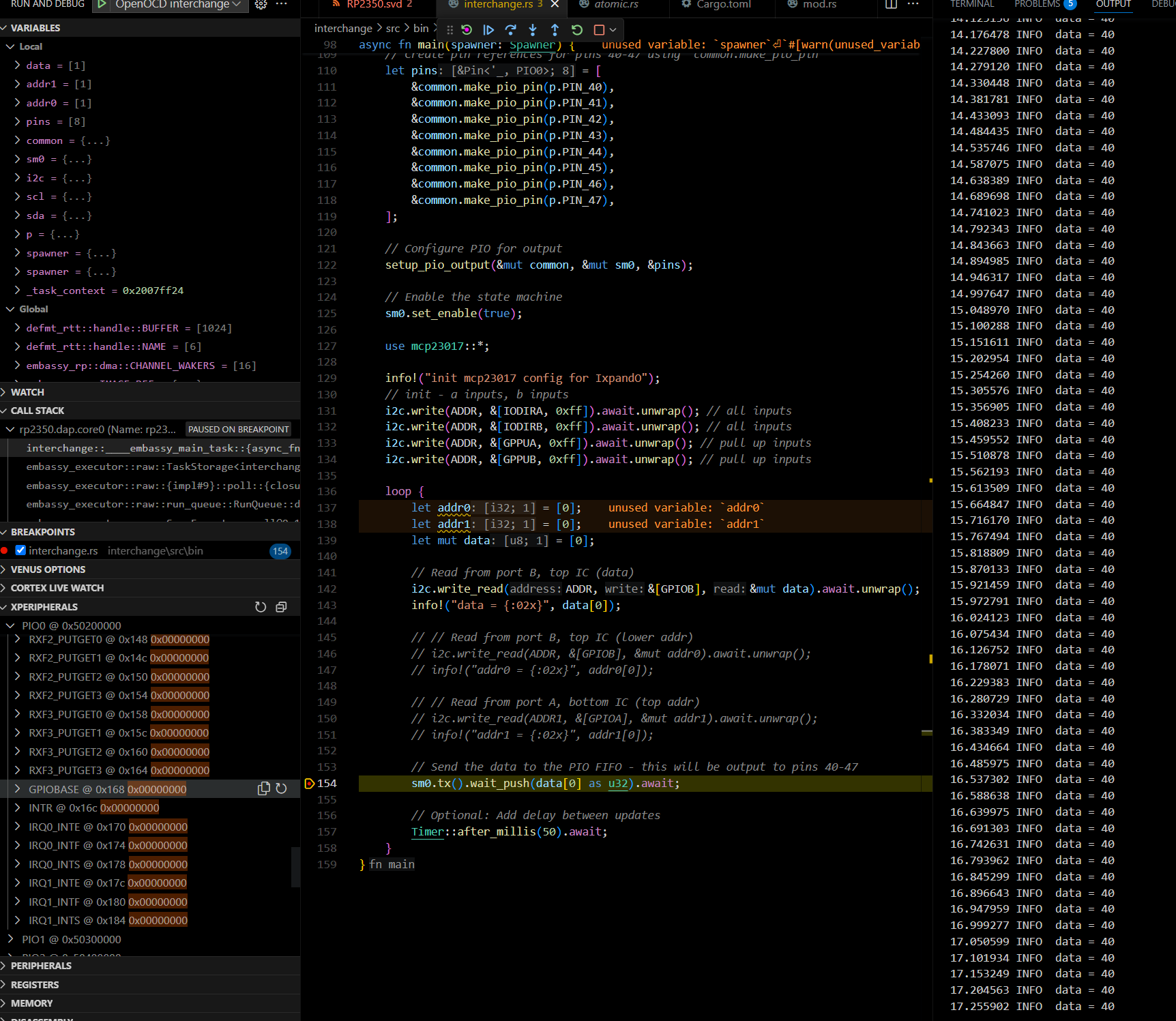 each of the RP2350's 48 GPIO pins).