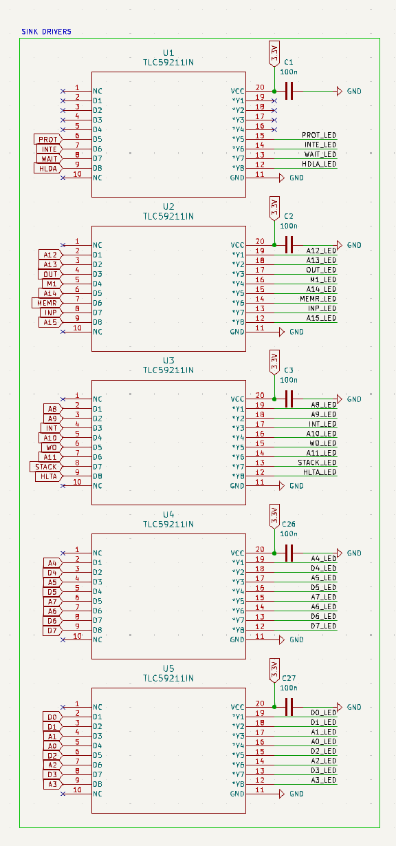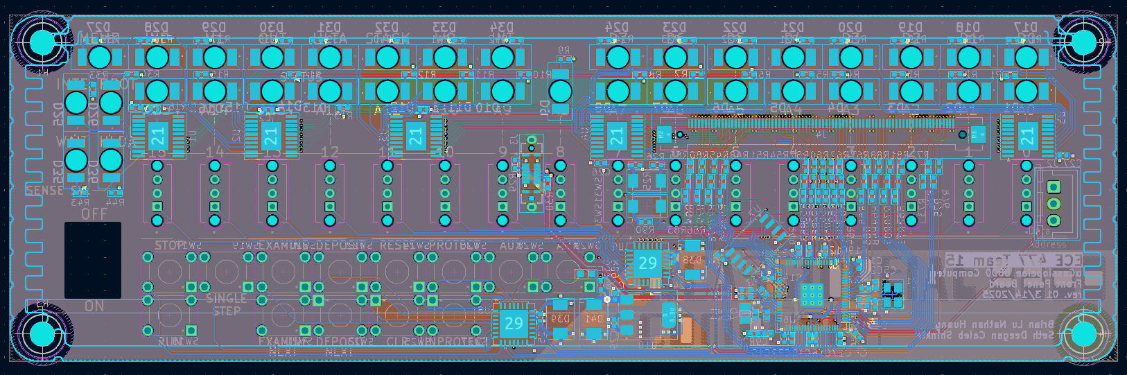 front panel should use expanders to address LEDs, and matrices to detect switch