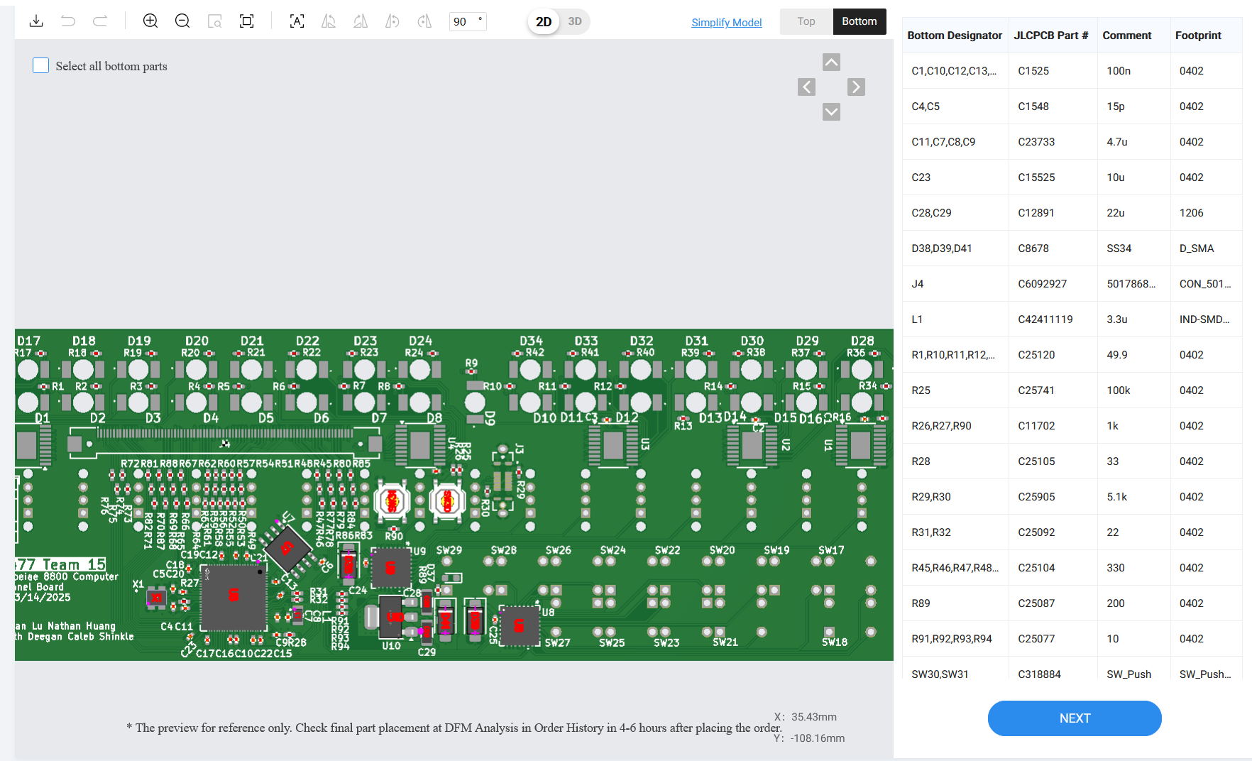 I finalized some additional design decisions related to part selection and solder