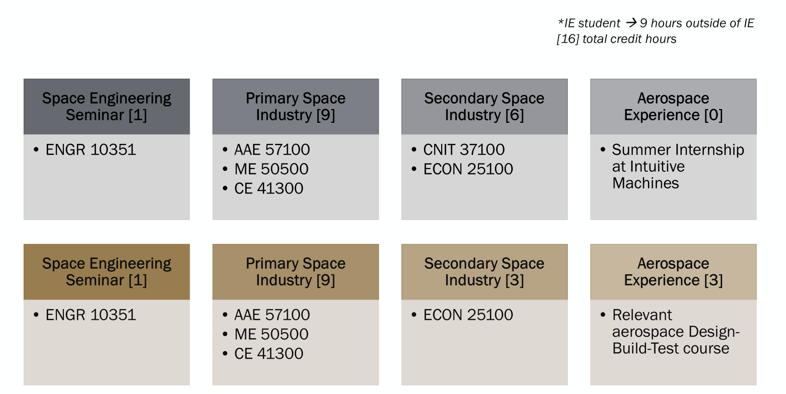 Students must take the Space Engineering seminar course, ENGR 10351.