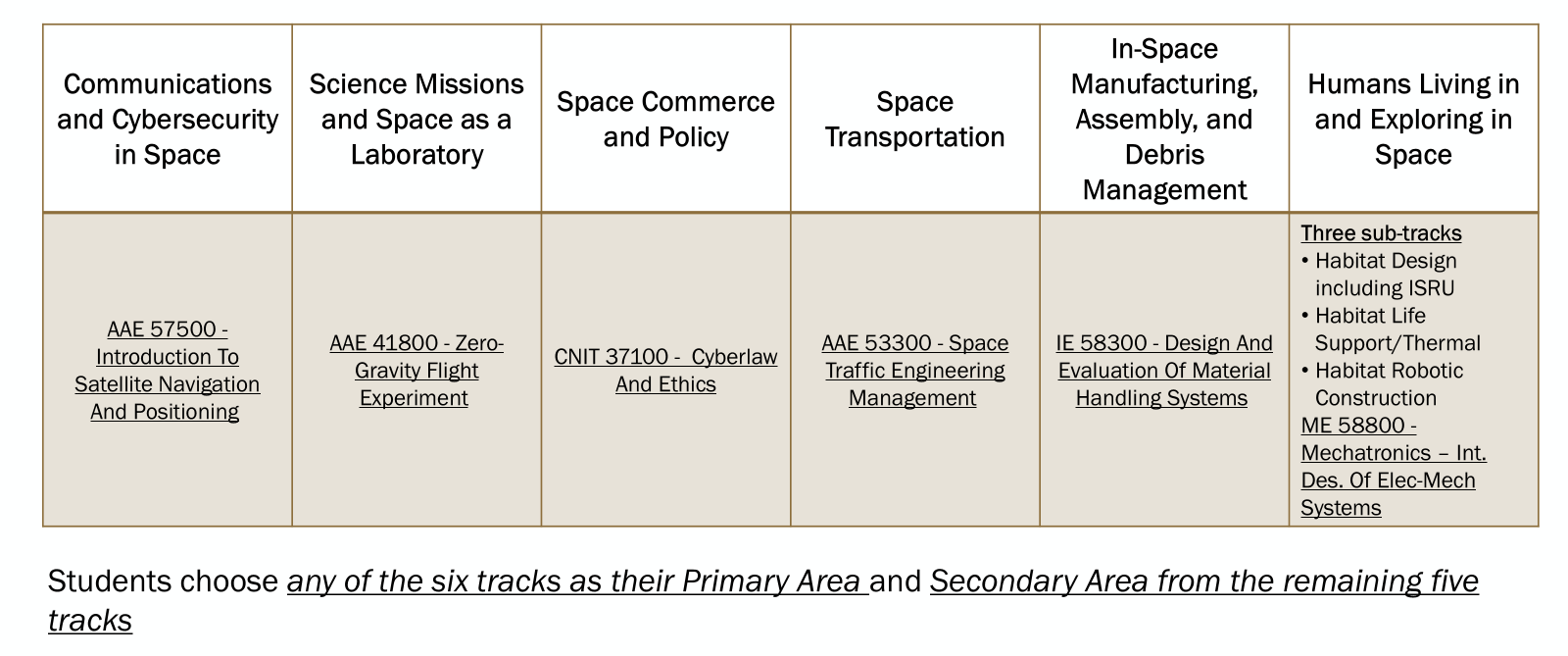 Only one sub-track may be selected from Humans Living and Exploring in Space