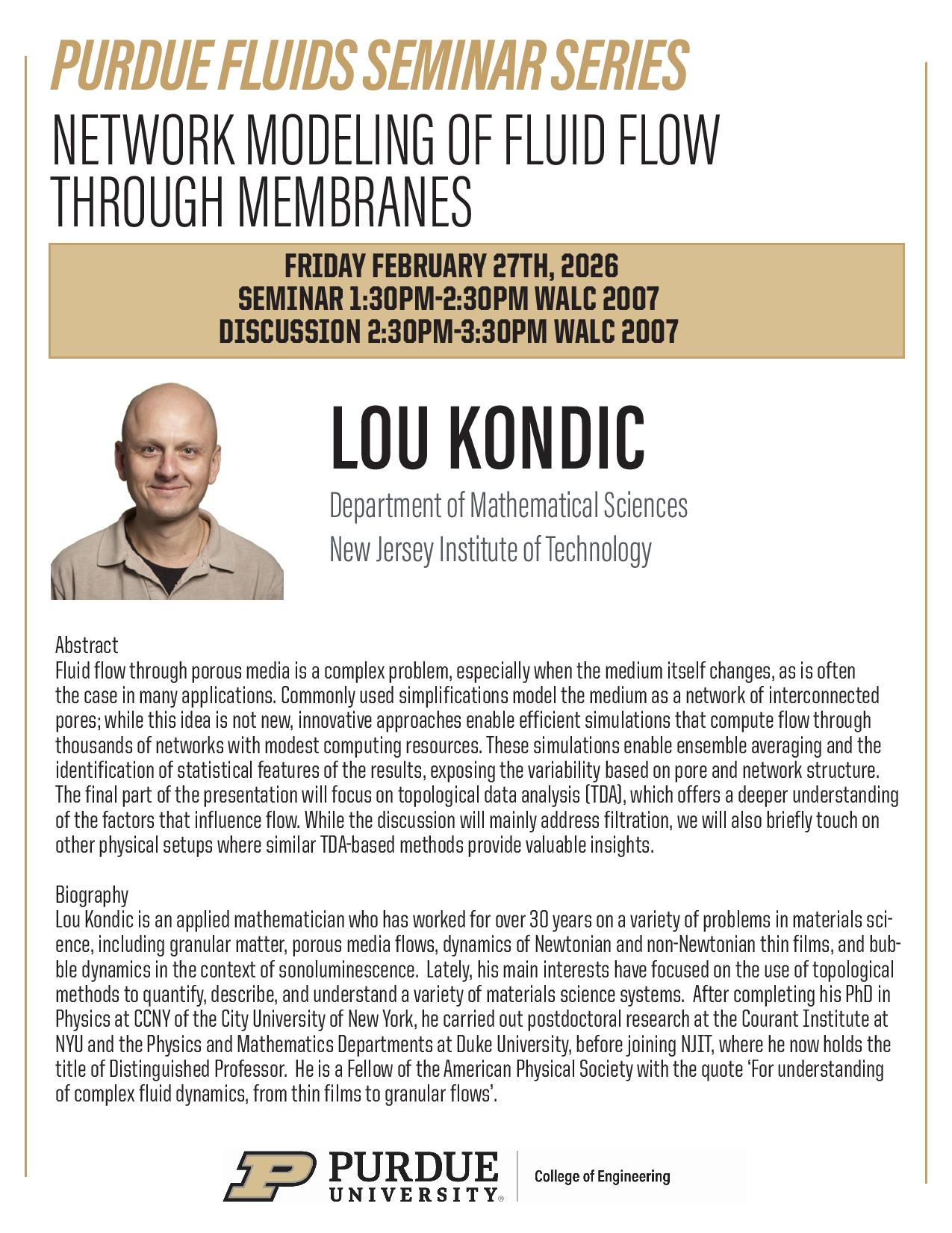 Purdue Fluids Seminar Series: Network Modeling of Fluid Flow Through Membranes