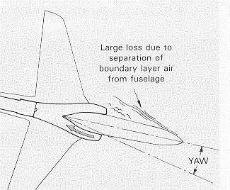 For smaller single-engine aircraft, a pod generally isn't feasible. Instead, the usual practice is to bury the engine in the fuselage and have one or more intakes on the top, bottom, or sides. Most military jet trainers and many front-line fighters like the F-16 use such an installation. The problem is that if the aircraft maneuevers "away from the duct" (due to yaw or angle of attack) the airflow in the duct is much decreased due to separation. |