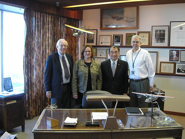 Jamie Renna, Vice President - Engineering Safety, Test and Evaluation hosted a reception in early November for head of school Dr Tom Shih and Purdue alumni Sikorsky employees. Bob Flemming, BSAAE'67 and Kevin Ohrenberger, BSAAE'79 are pictured with Tom and Diane in Igor Sikorsky's office. (pictured above right)