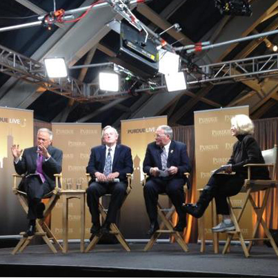Formerly known as Purdue on the Road - a new series of events featuring thought provoking discussion and Boilermaker fellowship took place this spring. Purdue alumnus astronaut Jerry Ross was also a panel member along with Professor of History Randy Roberts. The moderator was Moira Gunn, Founder & Host of Tech Nation and BioTech Nation.