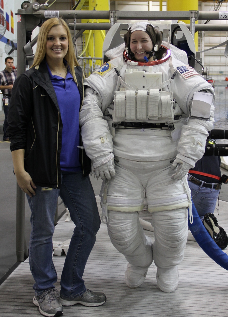 Mark Willsey BSEE ‘07 and Stephanie Johnston BSAAE ’12 took the role as astronaut in the NBL while Battocletti instructed them from the control room.