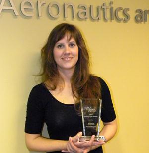 School of Aeronautics and Astronautics Ph.D. student Amanda Haapala received the 2014 Leading Light Award on October 1, 2014 in a special awards ceremony in Indianapolis. Sponsored by Women & Hi-Tech, the Leading Light Award honors women of achievement in science, education, and technology. Amanda was recognized for her demonstrated exceptional and substantive accomplishments as a recipient of the Rising Star Award which notes achievements in technology, science or engineering related careers.