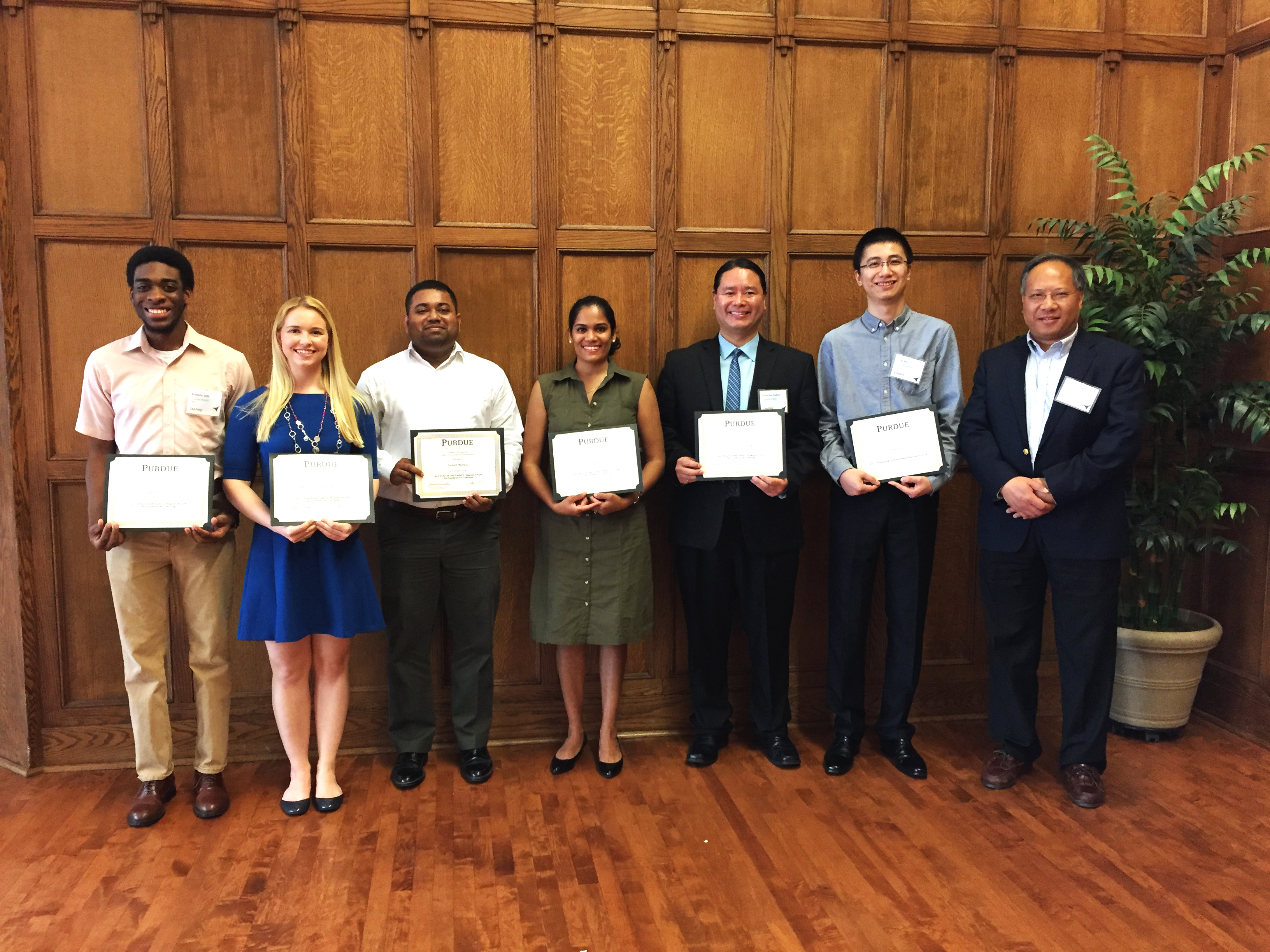Five AAE graduate students are recipients of the 2017 Magoon Excellence in Teaching Award from the College of Engineering. The honor recognizes outstanding teaching assistants in memory of Estus H. and Vashti L. Magoon who have influenced the lives of many engineering educators early in their careers through this award. The selection is made by both faculty and students to recognize those students who were exemplary in their work as teaching assistants.