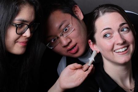 The second-place soybean team developed water-soluble Double Eyelid Glue. Members are Qiting Wu of Guang, China, a senior in biology; Michelle Chan of Hong Hong, a senior in health and disease; and Yuqian Chen of Fuzhou, China, and Sook Yan Goh of Penang, Malaysia, both seniors in biochemistry.