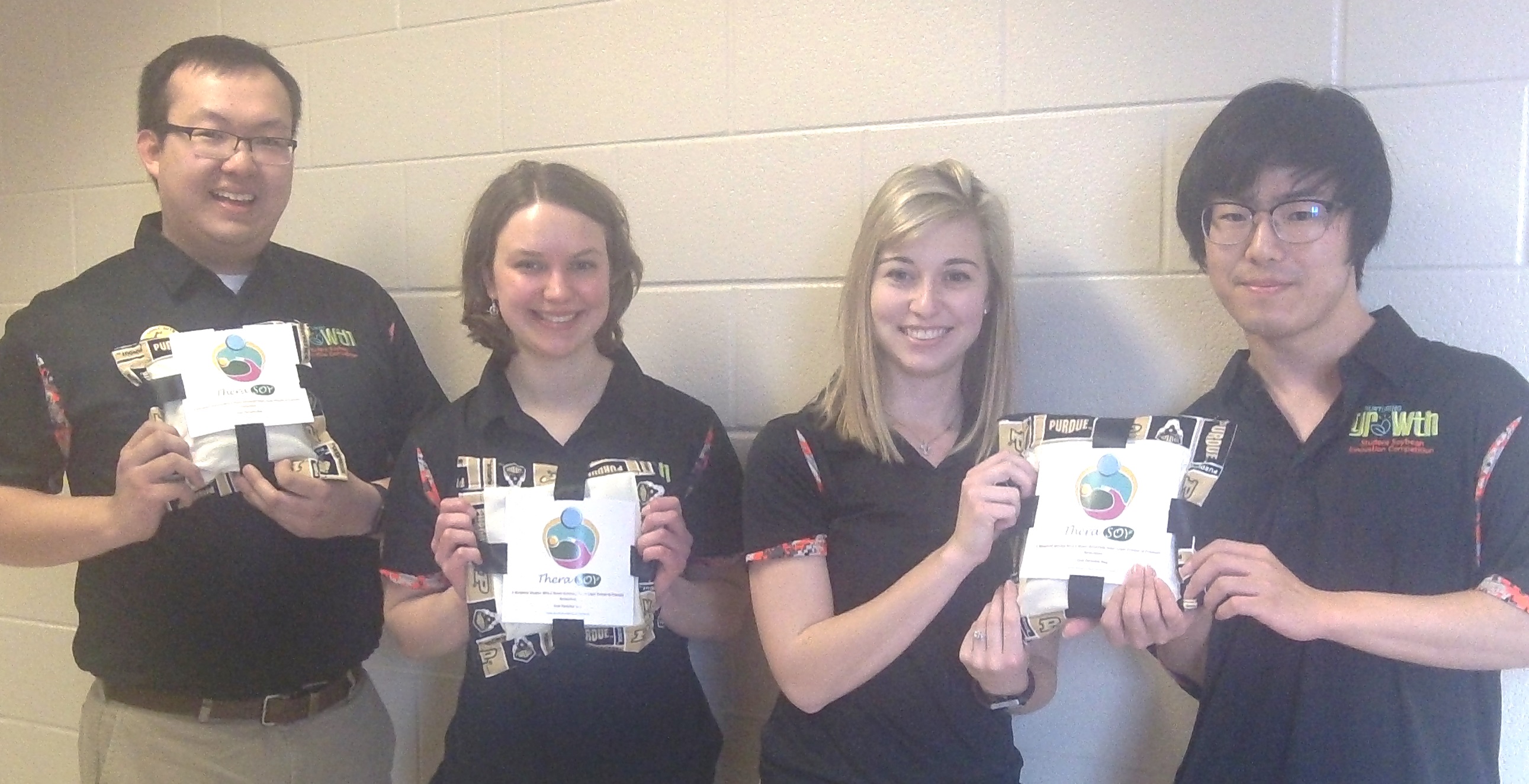 There were two second-place teams in the soybean contest. One team developed SoyBright, a nanomolecular soy-based polish aimed primarily at the automotive market. Team members are Milad Alucozai, a sophomore psychology student from West Lafayette, Ind., and Edward Van Bogaert, a senior history student from Rochester, Ill. The other team created Soytures, bio-absorbable sutures. Those team members, all students in the agricultural and biological engineering program, are Yeshaben Shah of India; Allison Ustynoski of Shavertown, Pa.; Kaitlyn Wolak of Indianapolis; and Megan Morrison of Carmel, Ind.