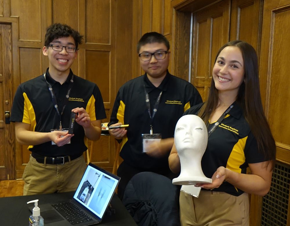 A third-place prize of $1,500 was awarded to the team that created SoyPods, soy-based detergent pods. Members are Andrew Cameron, a chemical engineering sophomore of Maple Grove, Minnesota; Xuan Luo, an agricultural and biological engineering sophomore of Zhengzhou, China; and Harshit Kapoor, a civil engineering sophomore of Kolkata, India.