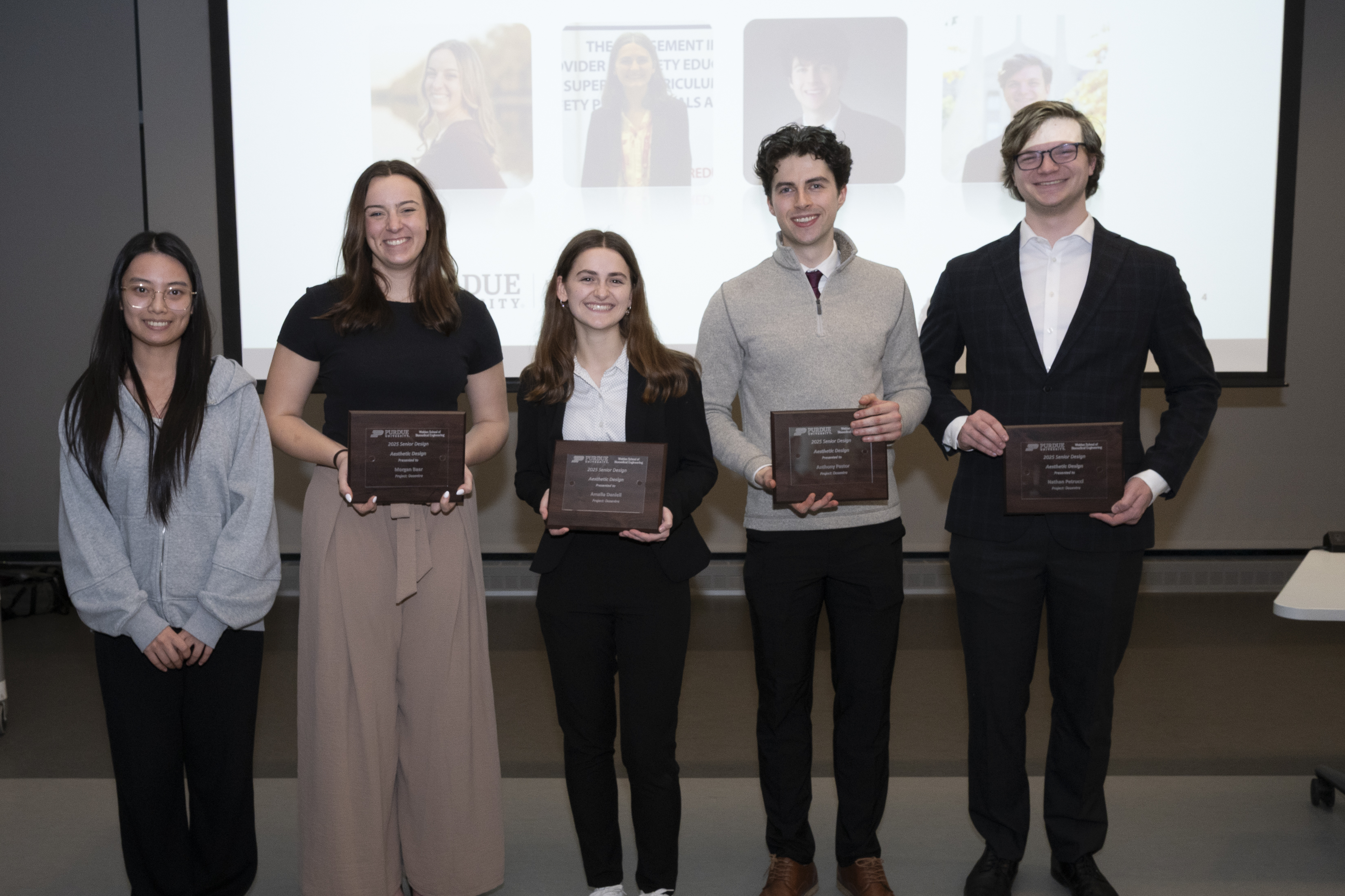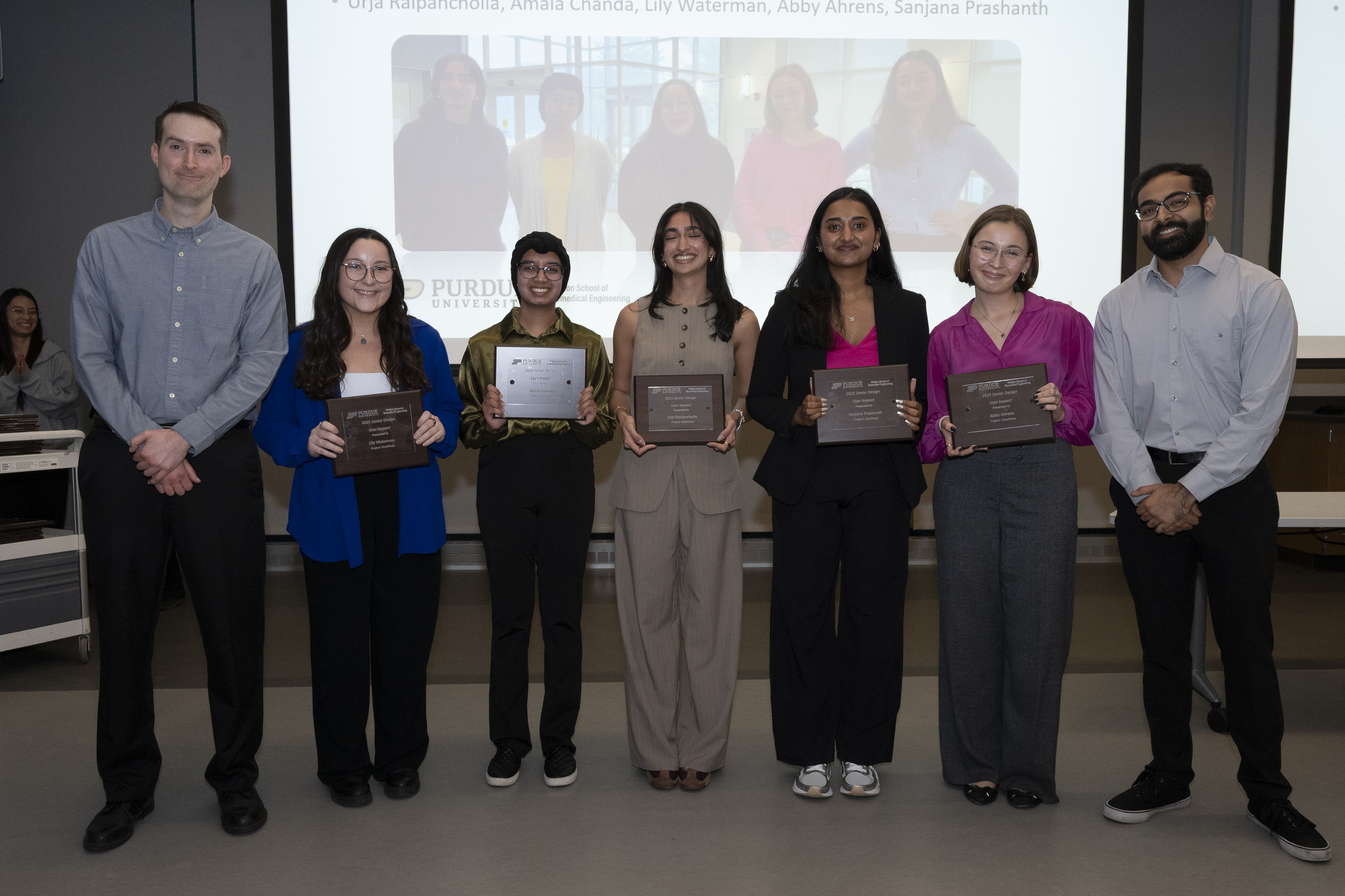 Jason Kabo was honored for providing exceptional access, resources and industry connections that propelled his team’s project forward. He supplied baseline testing equipment, facilitated interviews with student-athletes to gather user insights, and connected the team with industry partners. Kabo also secured practice access and a filming location at Mackey Arena, consistently making time for the team and supporting their progress throughout the semester.