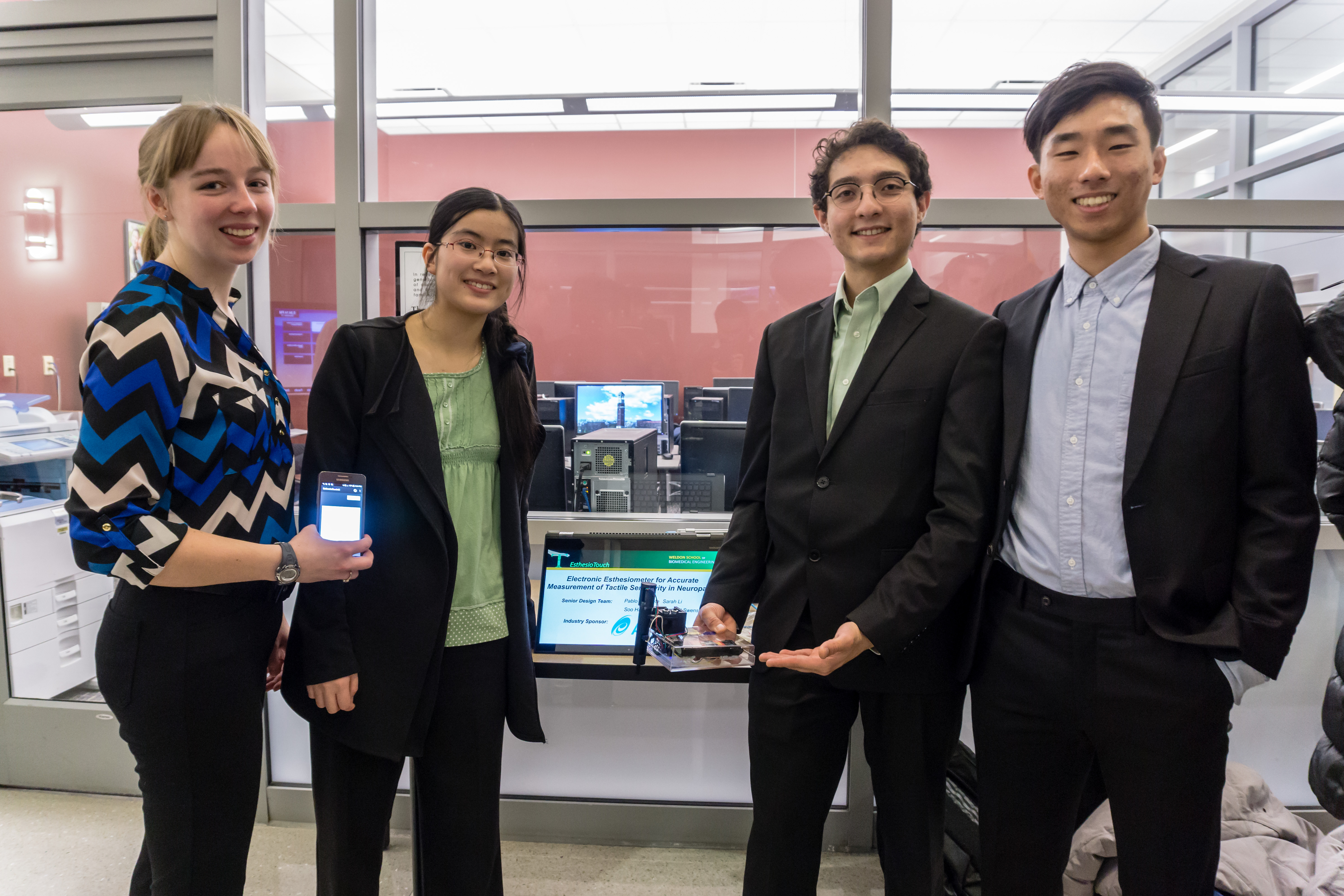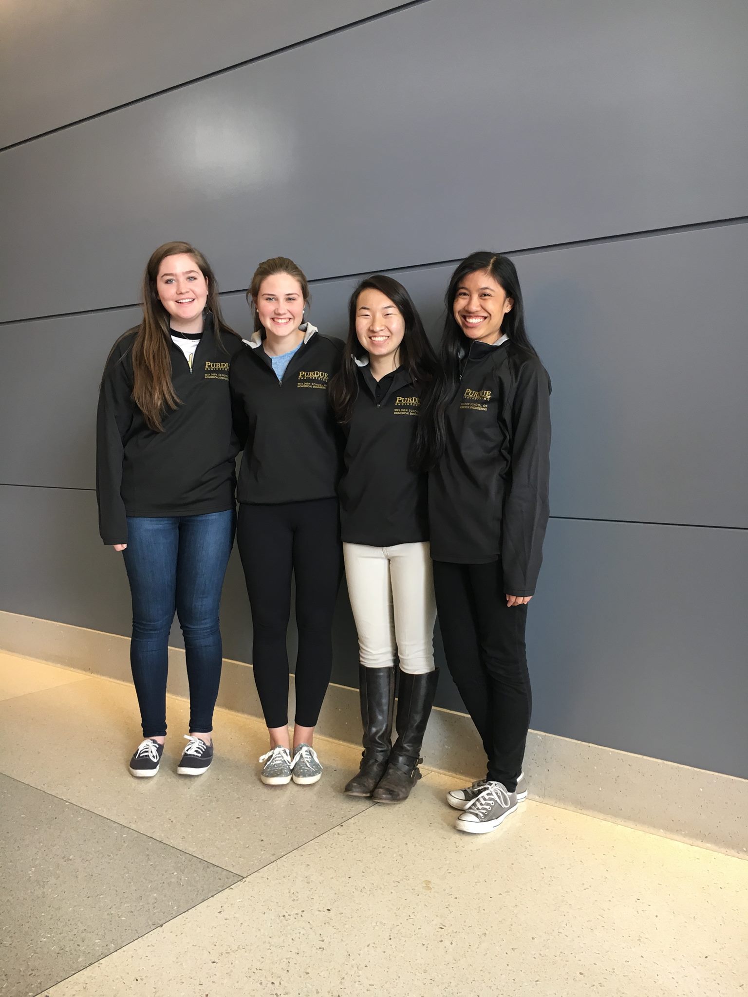 Alex Marshall and Sarah Li at the Great Wall of China during study abroad. Xiaohong Tan research poster presentation. Xiaohong Tan and Charlotte Mai at the National BMES Conference. Wearing Weldon Pride Quarter Zips The People's Choice Award Senior Design Team Winners! The AutoCPR 2.0 Senior Design Team Senior Design Presentations - Automatic Red Blood Cell Counter Senior Design Fun! Priska Meehan-Numminen and Jessica Ma having fun after finals. Poster Presentations for BME 206 Lab. Post Finals! Juliet Heye and Priska Meehan-Numminen done with Senior Design Project. John Nicholas golfing - hole in one! Jingyi Qin explaining a Senior Design Project. Jessica Ma jumping for joy at MJIS. Holiday Season in the Weldon School. Hamna Qureshi at Universal Studios in LA. Festivity at the Union. Evan Surma in Ireland Evan Surma at Giants Causeway in Northern Ireland Nithya Sridhar and Hamna Qureshi enjoying the beautiful spring weather around campus. After Junior design presentations. Annual BME Bar Crawl Annual BME career fair networking night. Annual BME cookout. BME and Timmy Global Health Banquet BME at the National BMES Conference BME bar crawl fun! BME Clinical Shadowing Maymester at IU Methodist BME goes on a cruise ship during spring break. BME goes to Phoenix AZ for the National BMES Conference. BME hiking in Ireland BME trip to the Bean in Chicago. Greek Life Relay for Life fundraising for American Cancer Society. BMES Banquet BMES Community Service - Preparing Homes for Winter. BMES DNA candy building activity with college mentors for kids. Corey Linkel photobomb! MJIS Atrium after finals. Grand Prix Spring Break in Cancun. Congratulations BME Class of 2018!