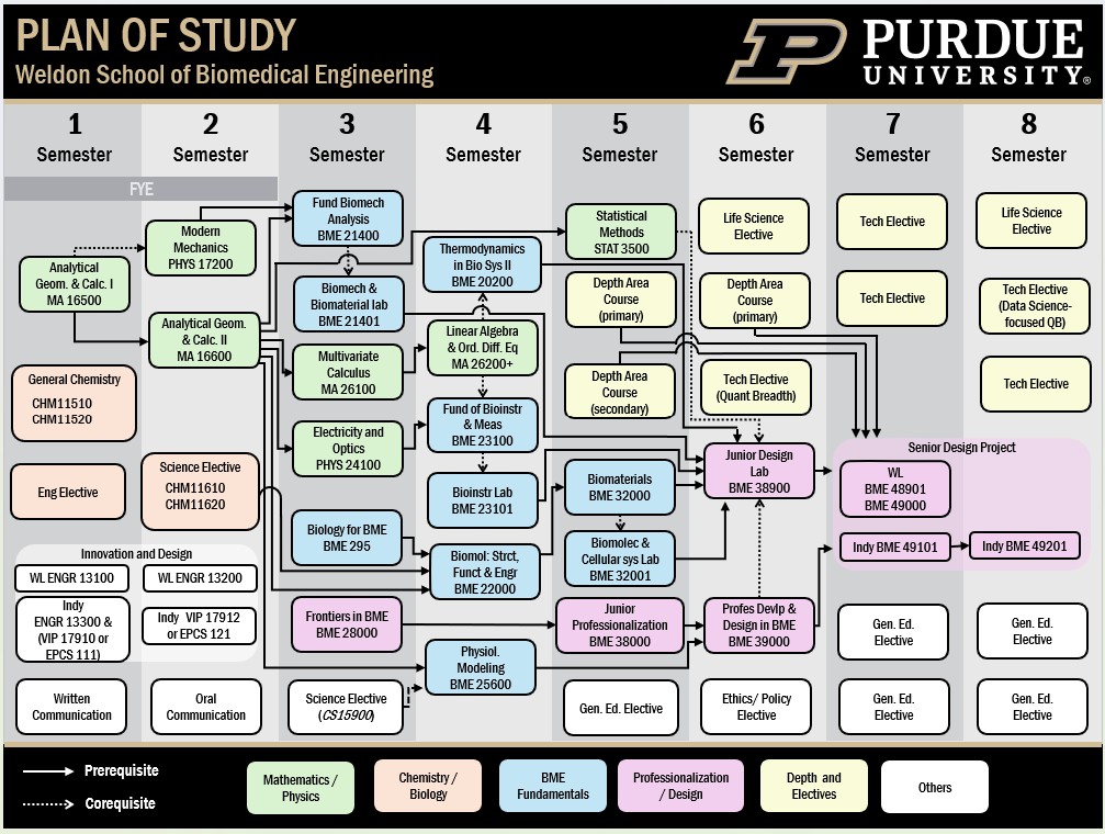 Major required courses are courses which every Biomedical Engineering student at Purdue must complete. These courses include those required for First-Year Engineering, BME courses, Depth Area courses and additional STEM courses.