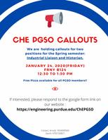 PGSO will be holding callouts for two positions for the Spring semester: Industrial Liaison and Historian.
