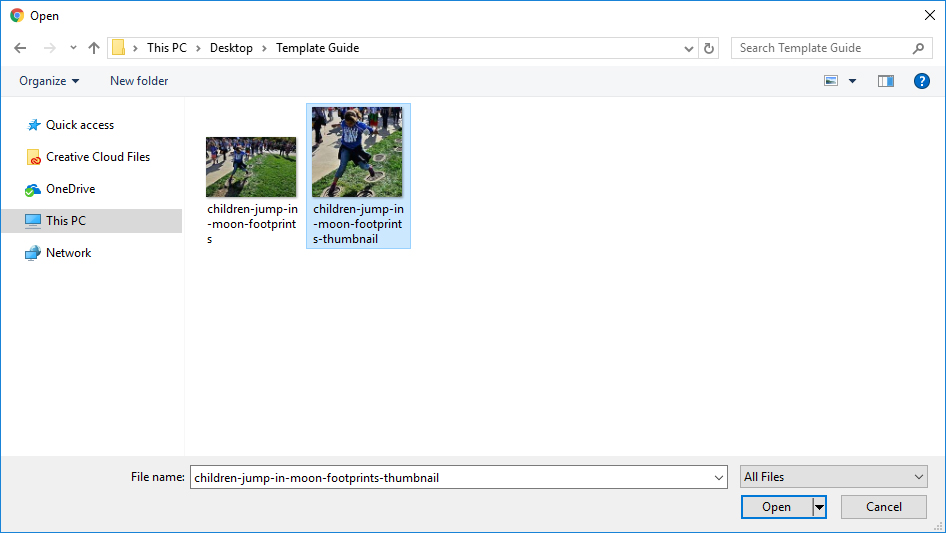 When the browser’s Open File window appears, select the thumbnail.