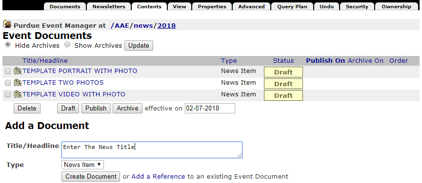 Tutorial: Adding a News Item Using a Redirect