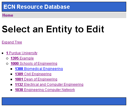 Once your entity is created, browse to it from the main page of the ECN Resource Database. If it does not show up by default, click the "Expand Tree" link to view all entities.