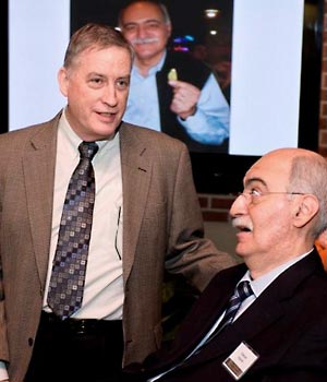 Radcliffe (shown at right, standing, with Haghighi) received BS and MS degrees in mechanical engineering from the University of Queensland (Australia) and a PhD in bioengineering from Strathclyde University (Scotland). Before joining Purdue in 2007, he was the Thiess Professor of Engineering Education and Professional Development in the School of Engineering at the University of Queensland and Director of the Catalyst Research Centre for Society and Technology. His teaching and research interests span design, sustainable systems, engineering education and professional development, and knowledge management.