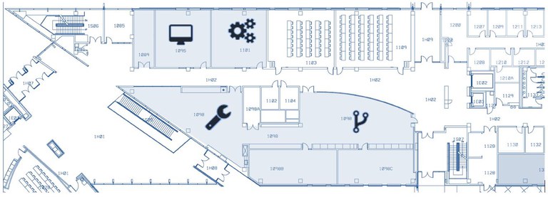 The electronics prototyping lab is the perfect place for building your electrical projects. Oscilloscopes, function generators, power supplies, soldering irons and various other instruments are available in this area.