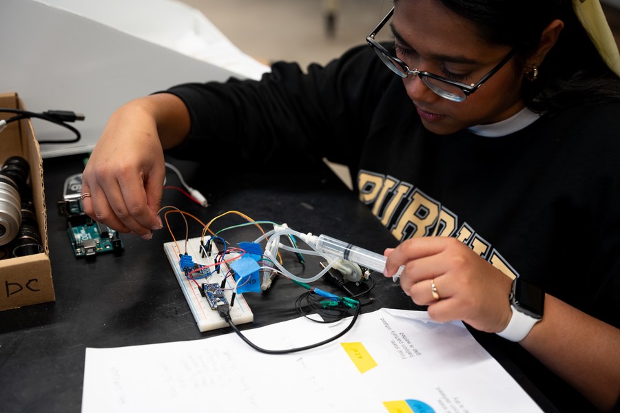 Kamal's connection to Purdue 1 runs deeper than the stage. This semester, she has been working in Collicott's AAE 418: Zero Gravity Flight Experiment course, developing hardware for an experiment that will fly aboard Purdue 1 in 2027.