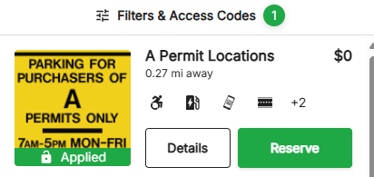 - Click green "Reserve" Button under A Permit Locations