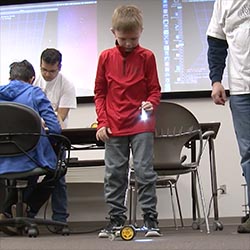 Deaf Kids Code is an organization that brings STEM-focused workshops to kids who are deaf or hard-of-hearing, at no cost. Purdue ME professor David Cappelleri collaborated with Deaf Kids Code founder Shireen Hafeez on a do-it-yourself robot kit specifically for deaf and hard-of-hearing students, which uses light to control the robot. His team developed the robot kit at Herrick Labs.
