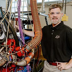 Greg Shaver doesn’t believe there should be a trade-off between protecting the air we breathe and achieving better engine efficiency of large vehicles on the road. Shaver, a mechanical engineering professor and director of Purdue’s Ray W. Herrick Laboratories, is part of a national effort researching the reduction of carbon dioxide, nitrogen oxide and microscopic particle emissions and improving the efficiency of diesel engines on the road today.