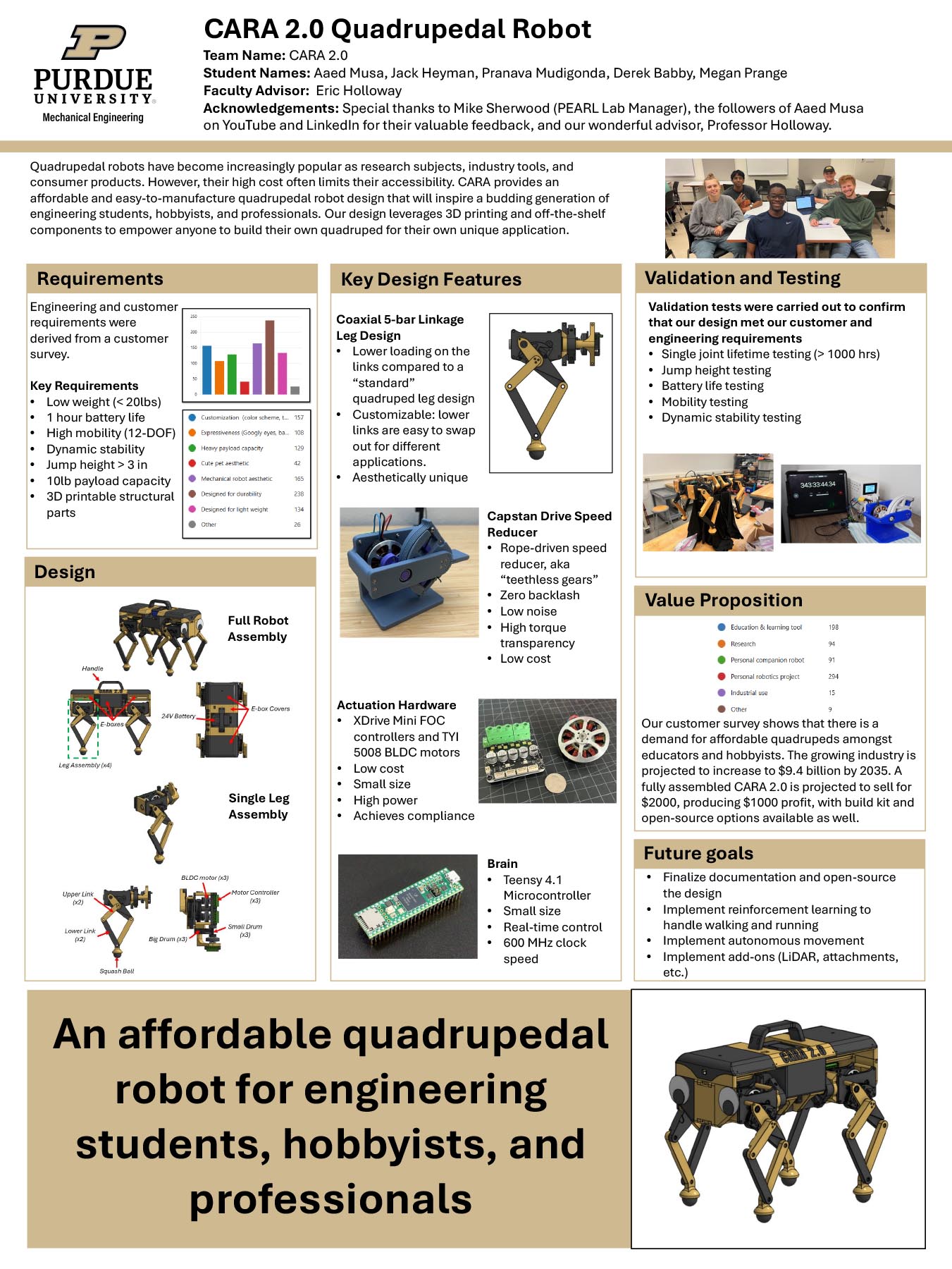 - An affordable quadrupedal robot for engineering students, hobbyists, and professionals