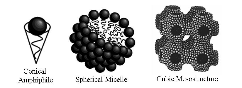![]() Figure 1: Conical amphiphiles form spherical micelles which pack into cubic mesostructures. |