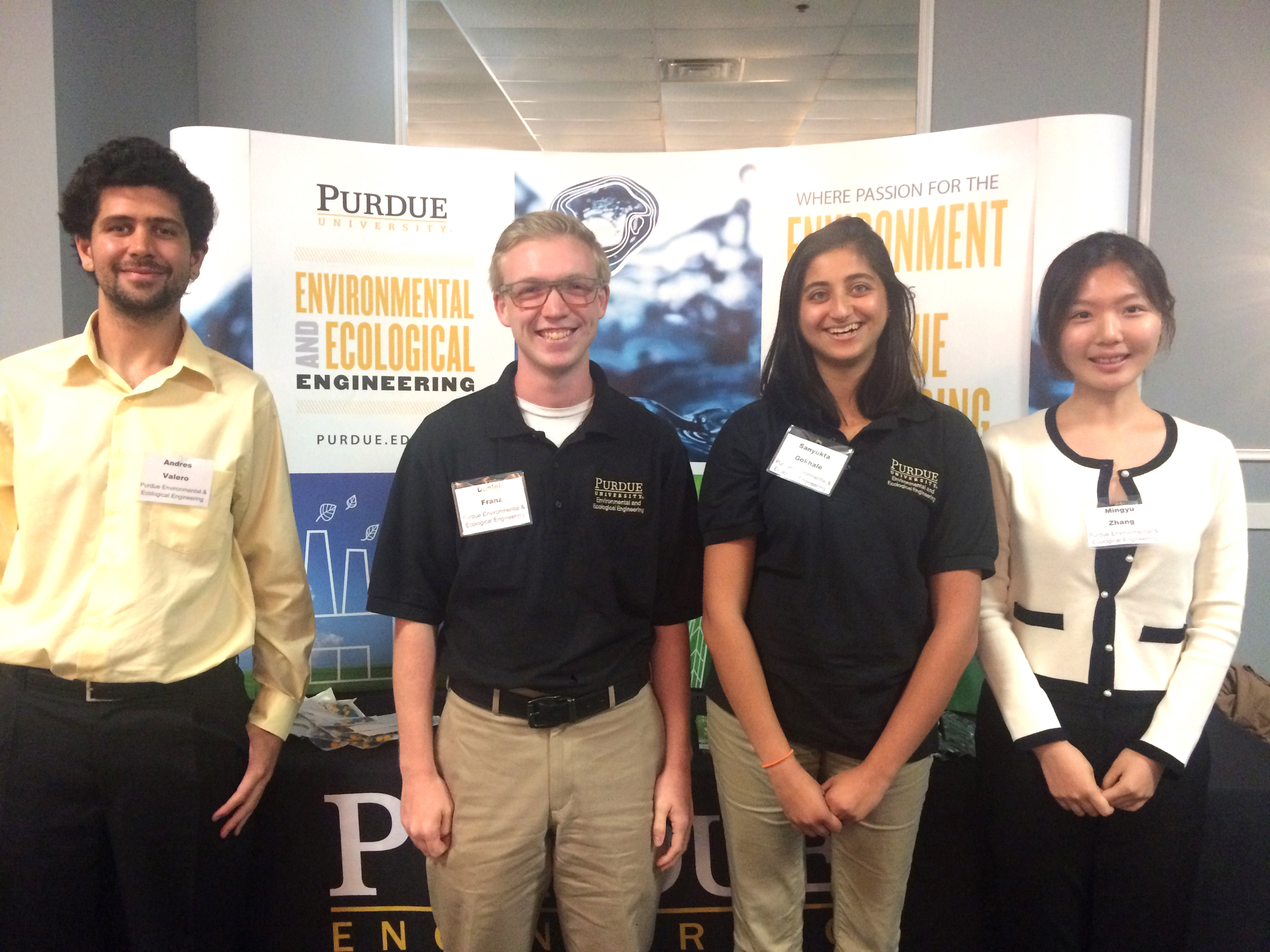 Margaret Whelton, Environmental and Ecological Engineering Manager of Industrial Experience, and four EEE students also attended the Indiana Pollution Prevention conference. Students Andres Valero, Daniel Franz, Sanyukta Gokhale, and Mingyu Zhang (pictured left to right) were sponsored by EEE.