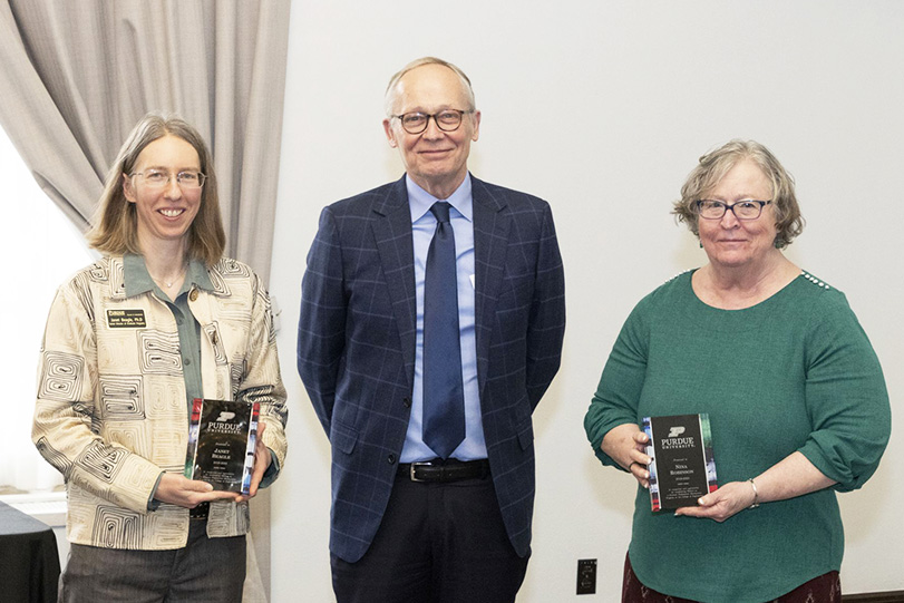 Left to Right: Janet Beagle (College of Engineering Senior Director of Graduate Programs), Mark Lundstrom (Interim Dean of the College of Engineering and Don and Carol Scifres Distinguished Professor of Electrical and Computer Engineering), and Nina Robinson (Administrative Director of Environmental and Ecological Engineering)