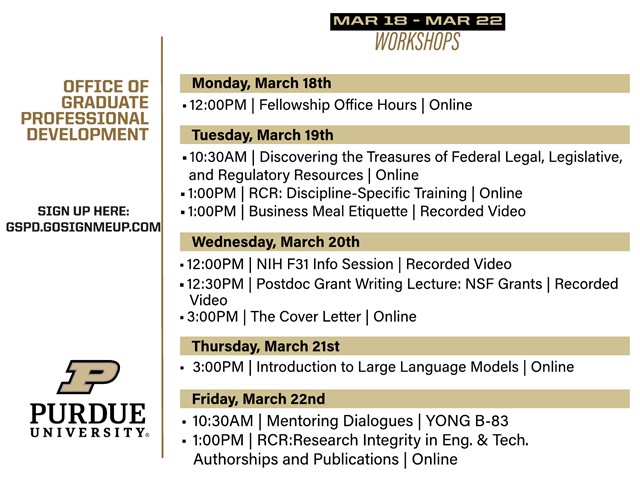 Graduate Professional Development Workshops, Week of March 18
