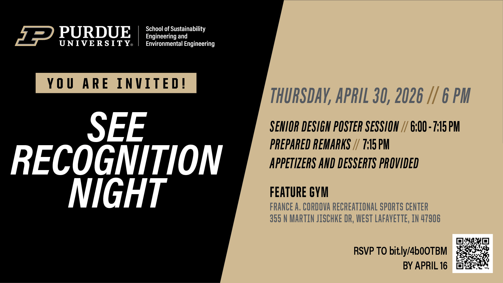 RSVP REQUIRED: Click SEE Recognition Night RSVP Survey or see the invitation with QRC