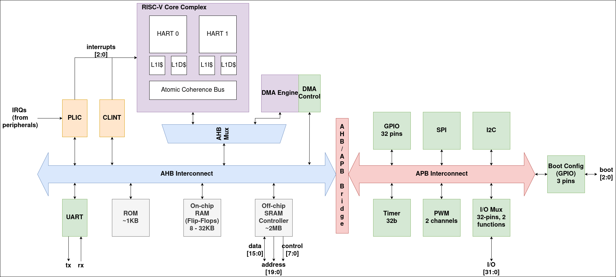 - Integrated PLIC interrupt controller