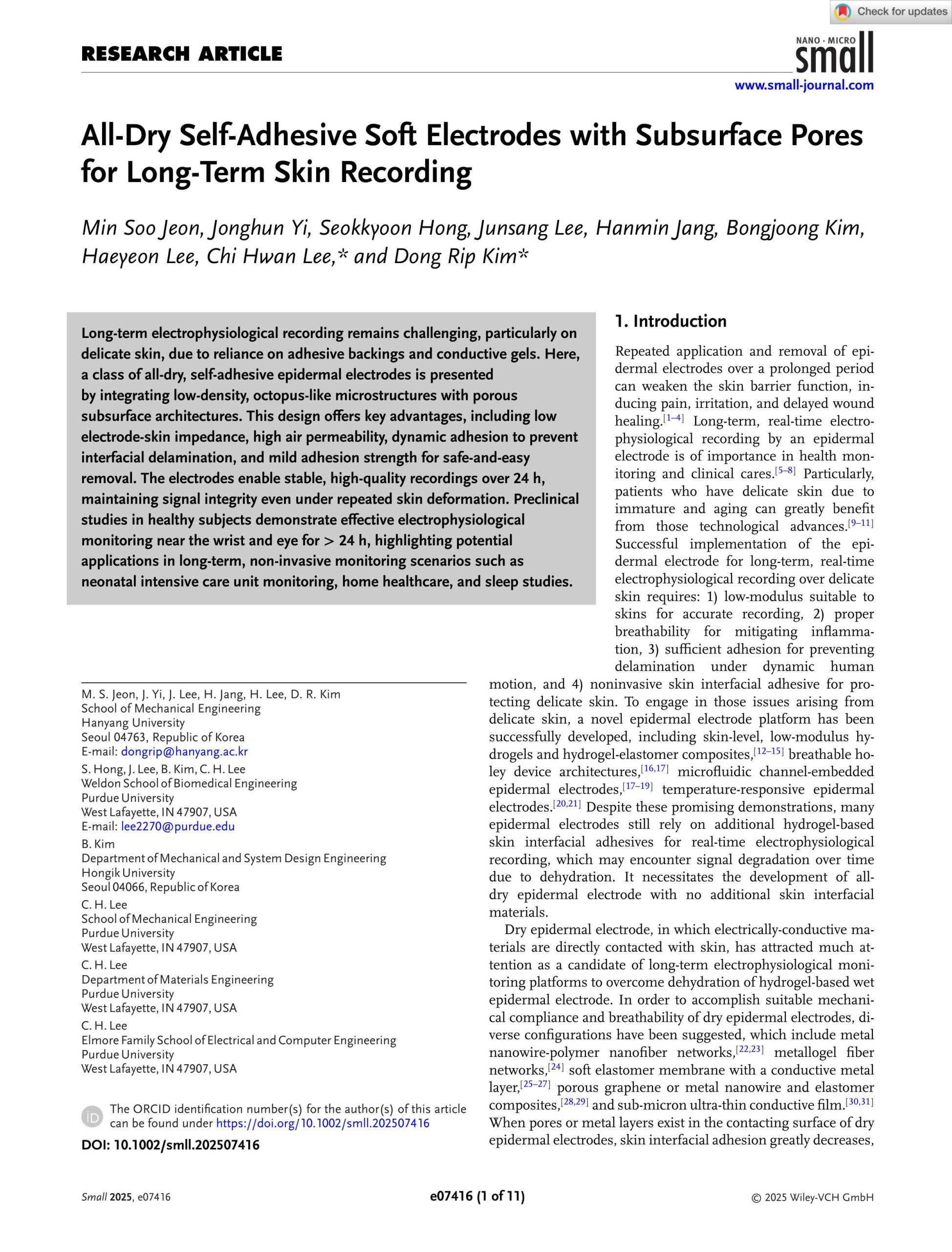 | 2. | M. Raj, S. Patel, C. H. Lee, et al., “Multifunctional epidermal sensor systems with ultrathin encapsulation packaging for health monitoring”