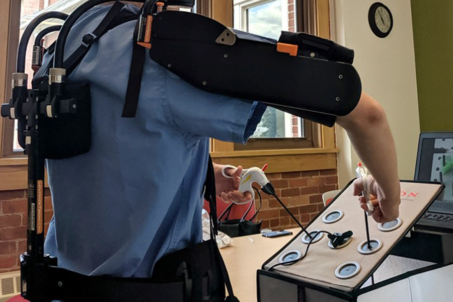 Surgical team members (n = 14) participated in focus groups, performed a 10-min simulated surgical task with a commercial upper-body exoskeleton, and then completed a usability questionnaire. Content analysis was conducted to determine relevant themes.
