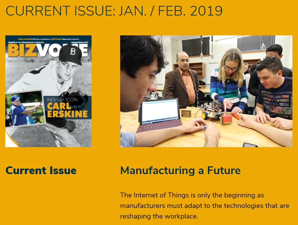 Indiana Chamber of Commerce BizVoice (Click here to open the website) highlights NSF Factory of the Future project in January/February 2019 publication. The goal of Factory of the Future is to develop new technologies that will allow manufacturers to realistically simulate interactions among workers, robots and machines.