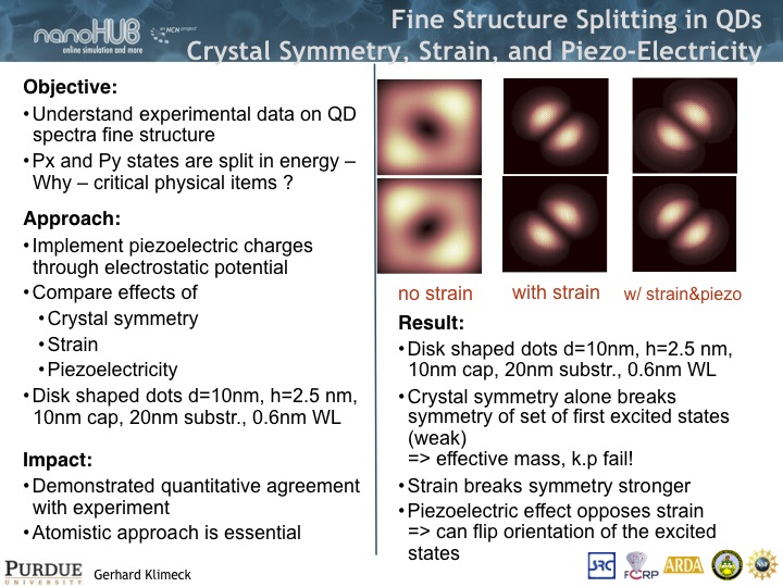 - Disk shaped dots d=10nm, h=2.5nm, 10nm cap, 20nm substrate, 0.6nm wetting layer