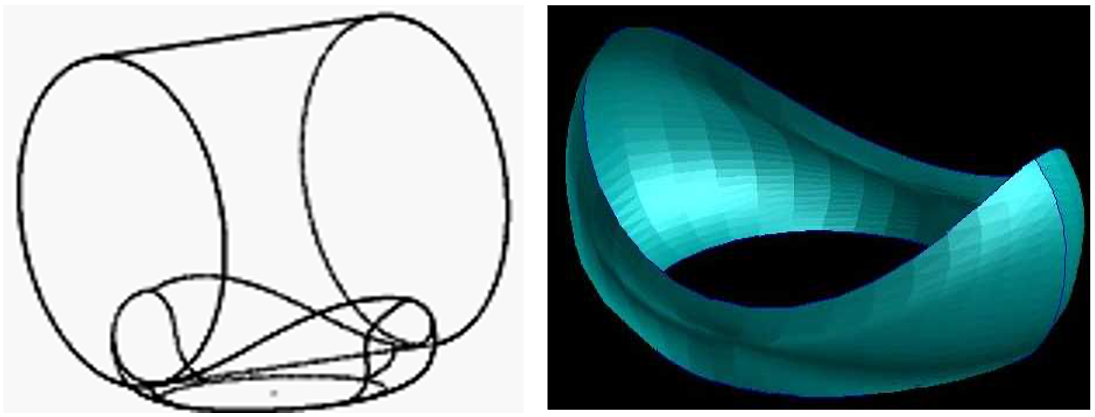 EIGA, mentioned earlier, utilizes measures of distance (algebraic level sets) constructed from the parametric enrichments; it explicitly preserves the CAD geometry of the interface allowing ease in calculating the curvature and normal that drive the interface motion under physical forces. The algebraic level sets are constructed from parametric boundaries using the theory of resultants of algebraic equations [10,11]. The algebraic level sets enable one to avoid the vexing CAD problem of needing to numerically calculate the intersection between complex three-dimensional parametric surfaces and stitching the surfaces together to form the common B-rep solid model (Figure 3).