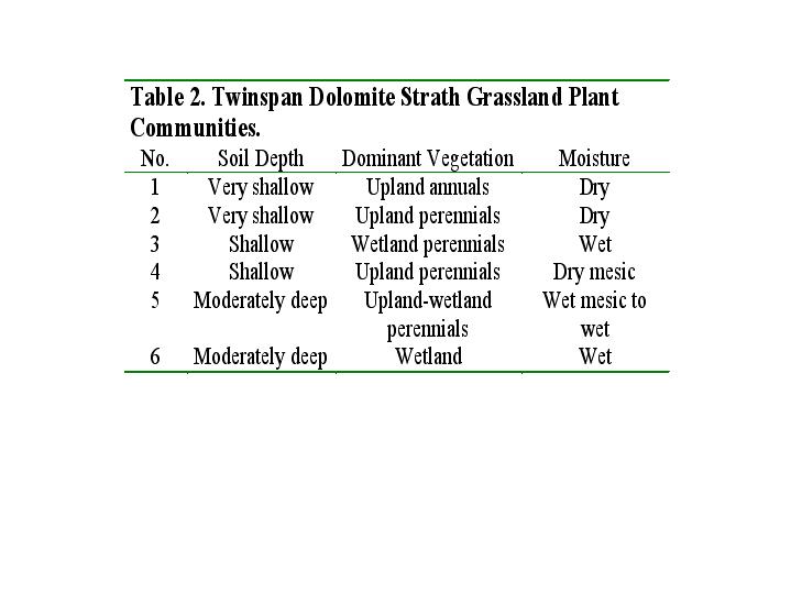 (wet shallow-soil prairie indicator species) and Bouteloua curtipendula (dry