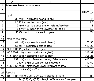3. (15 points) Dilemma Zone. The section of SR835 under study ends at an intersection with US23. The 85th percentile approach speed is 47 mph. Using a driver reaction time of 1.6 seconds, a vehicle deceleration rate of 11 ft/sec/sec, and a vehicle length of 12.5 feet, determine the minimum length of the yellow signal phase needed to prevent a dilemma zone. The intersection is 74 feet wide.