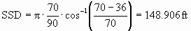 Because the calculated SSD is less than the length of the curve, the second equation should be used, so SSD=343.82 ft.